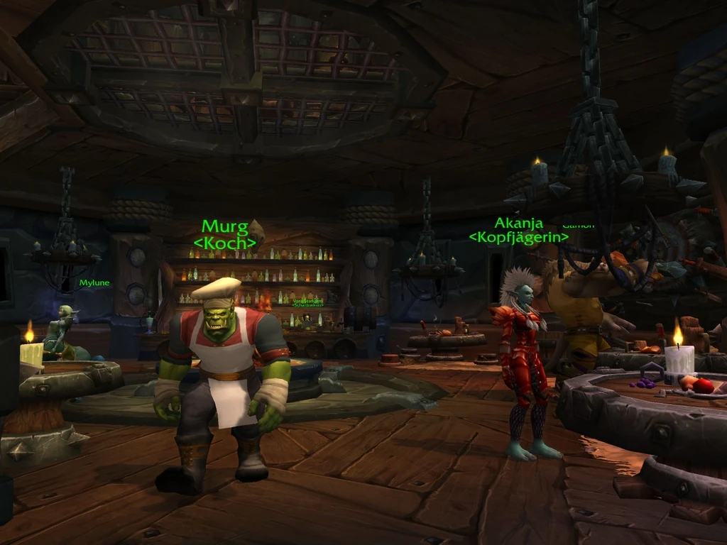 Die Gaststätte ist der perfekte Ort für Abenteurer, um sich auf ihren Reisen auszuruhen. Man kann sie dort auch auf ein paar Getränke einladen und sie dabei dazu bringen, sich seiner Sache anzuschließen. Im Mondsturzgasthaus hatte die Kopfjägerin Lysa Serion (Allianz) und in der Frostwallschenke Akanja (Horde) eine Auswahlliste erstellt.