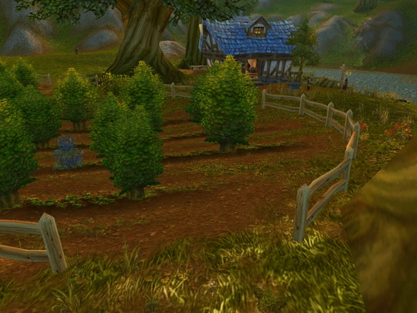 Der Obsthain am Spiegelsee befindet sich im westlichen Teil des Waldes von Elwynn, am südlichen Ufer des Spiegelsees. Zahlreiche Obstbäume wachsen in dieser Region. Die Obstgärten, wie auch die nahe liegende Baumwollplantage, wurden jedoch von Defias-Banditen eingenommen. Wer auch immer den Obsthain früher bewirtschaftet hat, ist lange fort und ein weiteres Opfer des vermehrten Banditenaufkommens in der Region geworden.