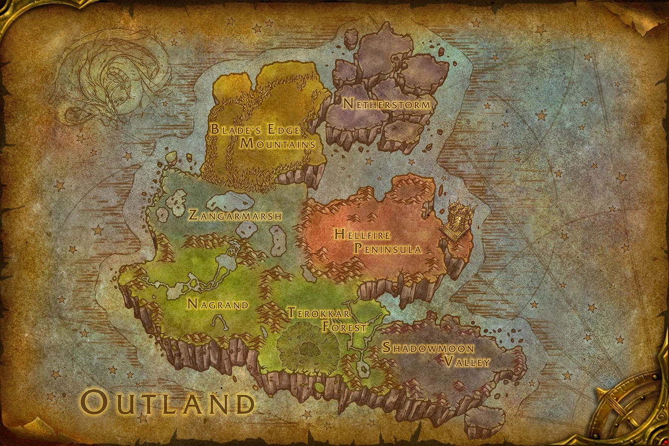 Die verwüstete Einöde der Scherbenwelt ist alles, was von der einstmals blühenden Heimatwelt der Orcs, Draenor, geblieben ist. Momentan leben auf der Scherbenwelt noch verstreute Stämme der Eredar sowie primitive, vom Rest ihres stolzen Volkes isolierte Orcs, und die mächtigen, arkanen Kreaturen des Chaos selbst.